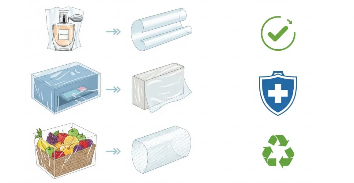 In food packaging, shrink film preserves freshness, reduces oxygen ingress, and supports tamper evidence.